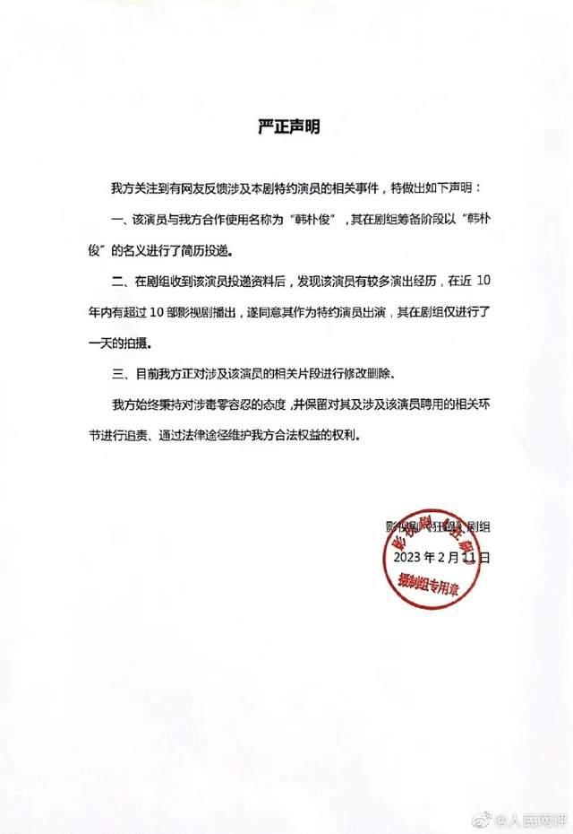 人民网评狂飙删除涉毒演员戏份:吸毒毁所有!《狂飙》演员曾涉毒给人警示