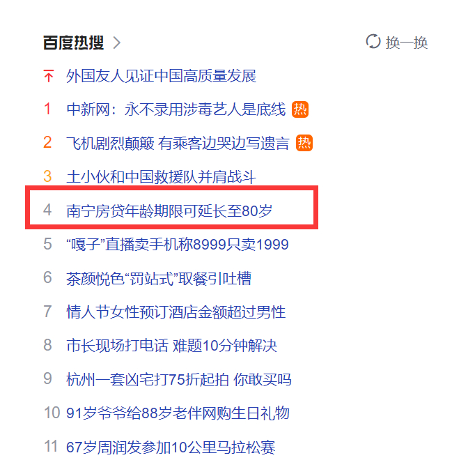 2月12日,一则“南宁房贷年龄期限可延长至80岁”的新闻冲上热搜榜。
