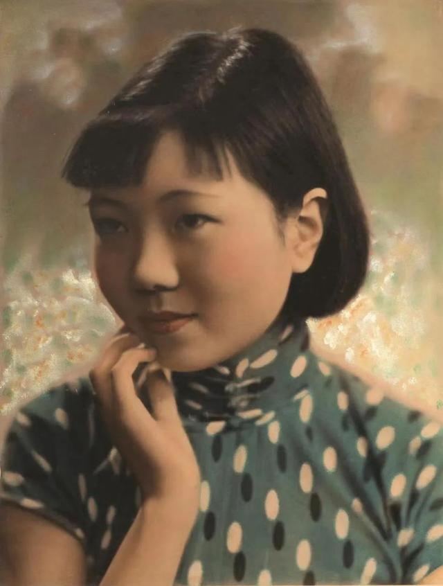 “少女穿着蓝白黑点的旗袍,短短的黑发,前面一排留海,由于头发天生又黑又硬,留海像一排刷子覆盖着额头。她的右手托腮,歪着头凝视着右前方。她在想什么呢?谁也说不出来了!”