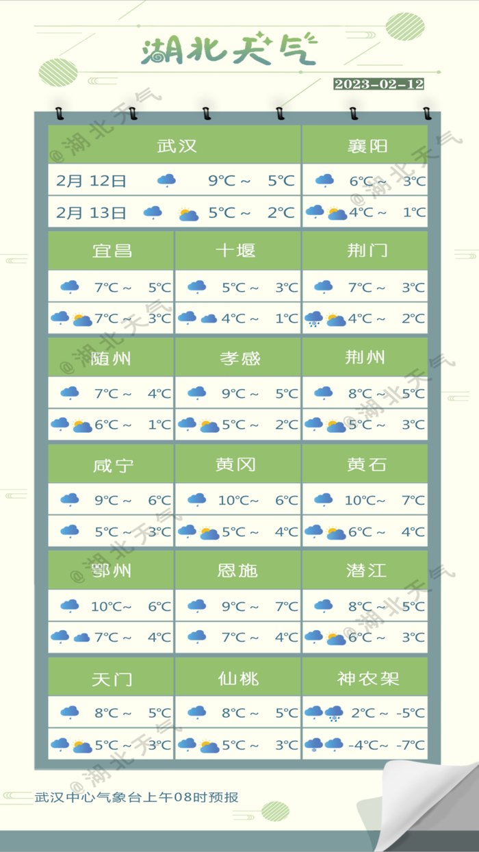 武汉中心气象台2月12日17时预报