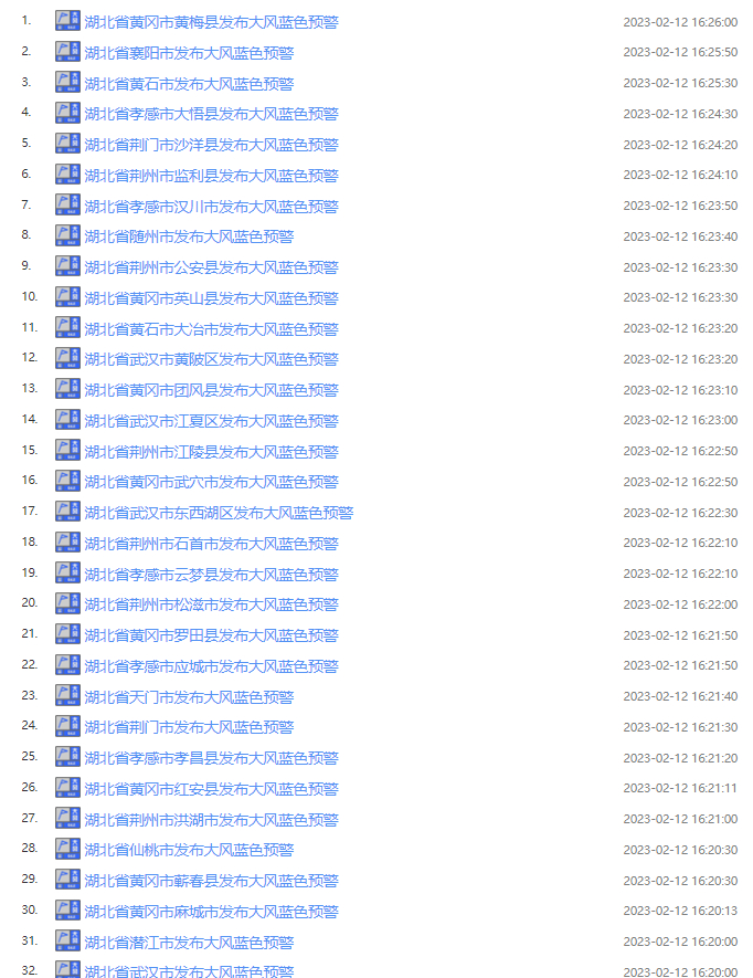 湖北多地发布大风蓝色预警