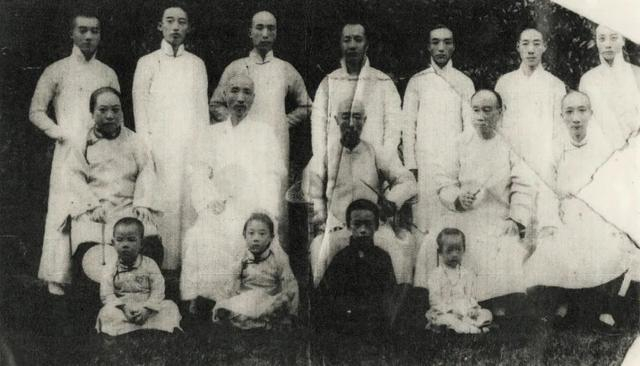 杨家合影,正中坐着拿烟杆的是祖父杨士燮,与他同坐第二排的是他的三个弟弟与老姨太,他左边是杨士骧。他们膝下是老姨太生的子女,从左到右依次是本书中提到的“狗叔”(十八叔)、姑姑(杨丽川)、“瑗叔”和小姑(他们虽然年幼,和后排站立者倒是同辈,只不过不是爷爷正妻所出)。后排站立的是我父亲这辈的,杨家“毓”字辈的,唯独没有父亲,因这时他已去世了。