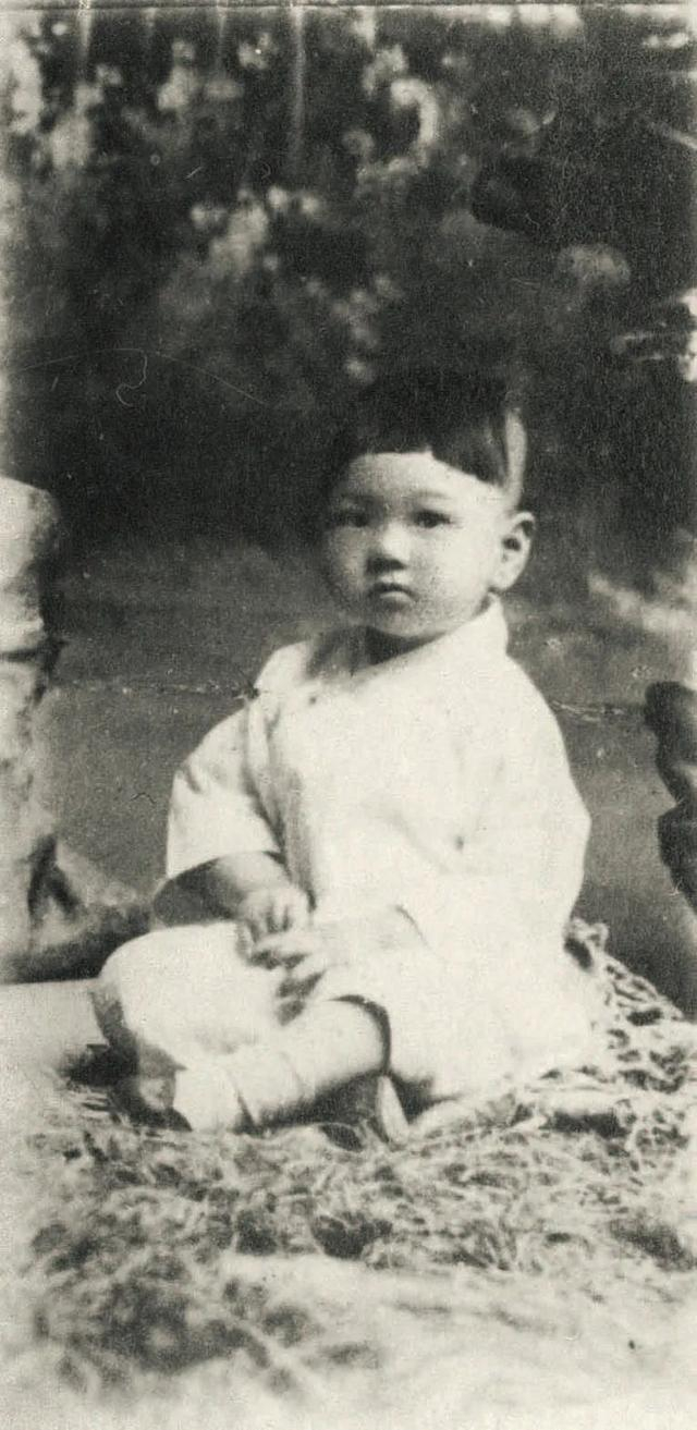 杨宪益一两岁时。原来的照片是两人的,在马车上,他坐在母亲和父亲中间,父亲抱着他照的,照片被什么人裁过之后,只看见父亲搂着他的那只手了。