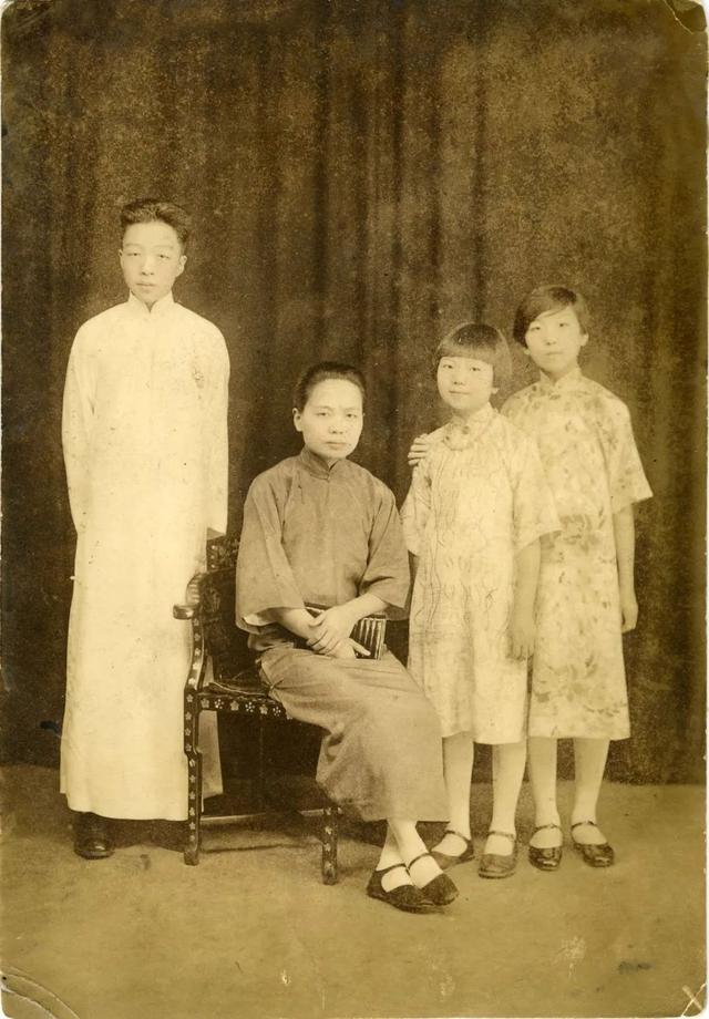 杨宪益出国前母亲与我们兄妹的合影。杨宪益过去是平头,这时头发梳上去,留大背头了,当时流行的发型,要抹凡士林的。