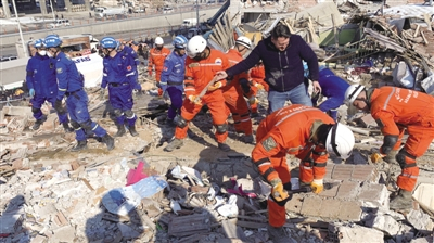2月6日土耳其发生两次7.8级地震,多地建筑被夷为平地,有数据称,地震已造成土耳其两万余人遇难,八万余人受伤。2月7日下午4时,合肥蓝天救援队首批8名队员已出发前往武汉,与各地蓝天救援队队员集合后赶赴土耳其。当地时间2月9日5时30分,队员们到达了该国重灾区马拉蒂亚。在马拉蒂亚,中国蓝天救援队是第一支抵达并参与救援的国际专业救援团队,一抹“蓝色”,呈现安徽力量。