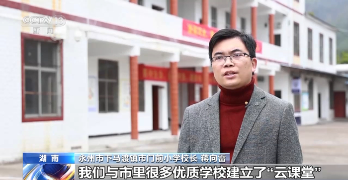 永州市下马渡镇市门前小学校长 蒋向雷:我们与市里很多优质学校联合建立了“云课堂”,定期进行远程网络教学,让学生们能同时听到音乐、科学这些优秀课程。现在资源很丰富,给了我们乡村教育提升的抓手。
