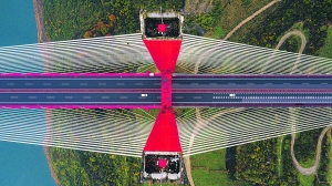 这座2019年通车的斜拉桥全长2135米,其中大桥最高桥塔332米,相当于110层楼高,是世界最高混凝土桥塔。