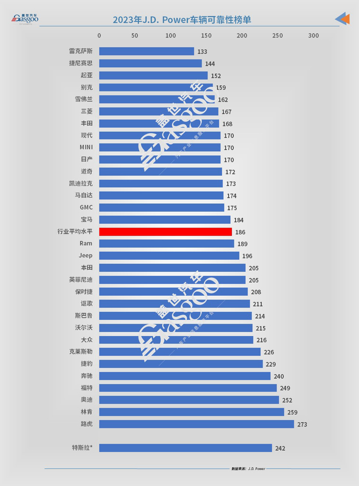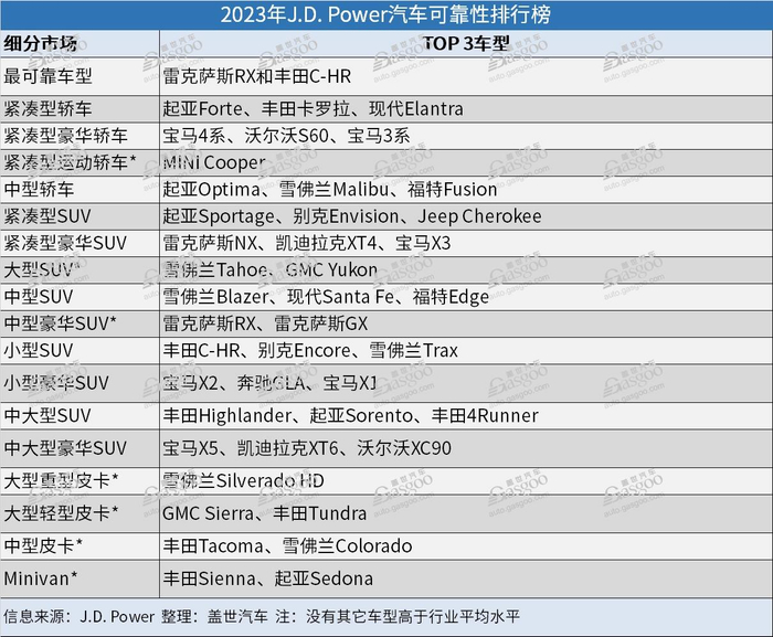 日前,美国市场研究公司J.D. Power发布了2023年美国车辆可靠性研究报告。
