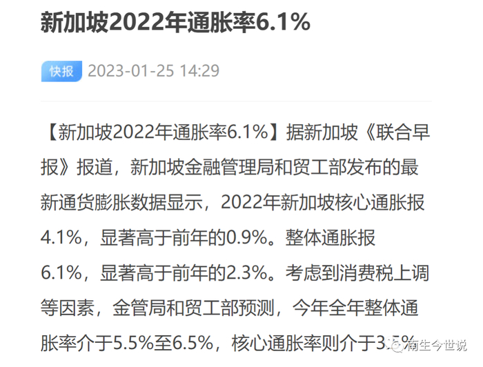网友们,我们提到的经济增长率,都是需要剔除通胀因素的——3.6%的实质性增长,是不包含多种商品、服务价格变动因素。2022年,通胀走向全球,新加坡也不例外。