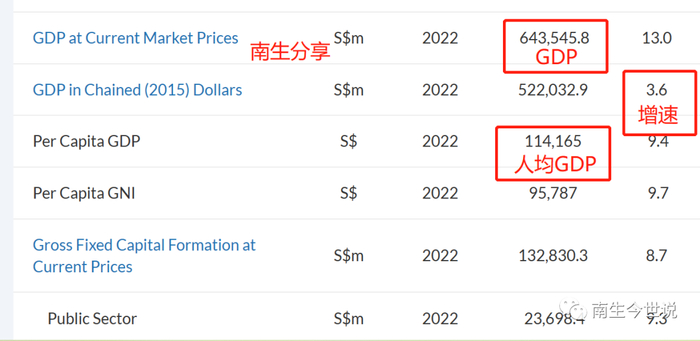 叠加今年第四季度的成绩,新加坡2022年的经济规模一下子突增至6435.458亿新元(如下图),创下历史新高。以563.7万左右的人口计算,新加坡人均GDP也大幅提升至11.42万新元的高位。