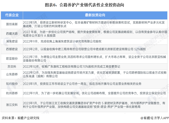 公路养护产业链代表性企业最新投资动向