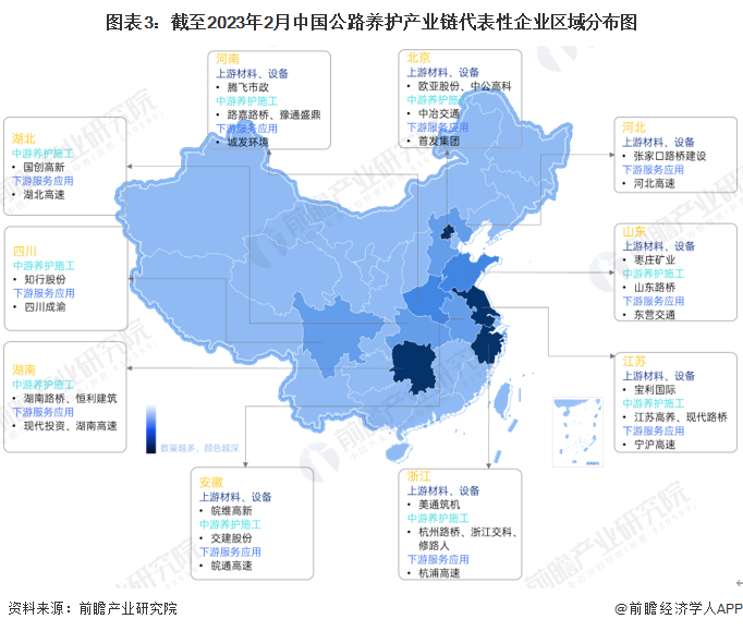 公路养护产业链区域热力地图:中东部地区分布较为集中