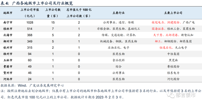 最后我们重点选取了城投存量债规模较大的区本级、柳州、南宁和钦州,分别从产业结构和平台概况等方面进行详细分析。