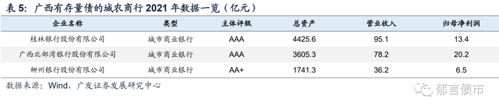 截至2023年2月3日,广西有3家城商行有存量债。其中,桂林银行和广西北部湾银行主体评级均为AAA,2021年末总资产分别为4425.6亿元和3605.3亿元,位列省内前2。桂林银行在原桂林7家城市信用社基础上组建而成,广西北部湾银行是顺应国家实施北部湾经济区开放开发战略,在原南宁市商业银行基础上改制设立的自治区级城市商业银行。柳州银行总资产规模则相对较小,为1741.3亿元。