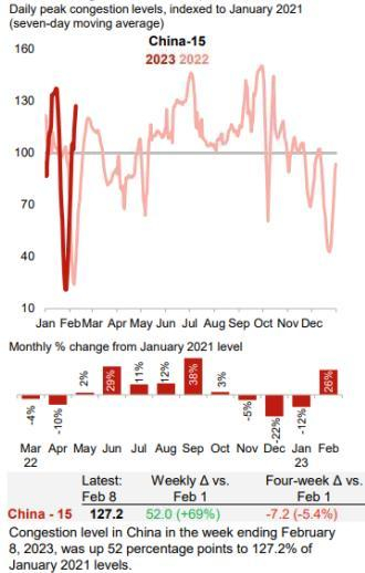 节后第二周,国内道路拥堵指数已经超出22年春节后同期约3%,相当于19年同期水平的127.2%。