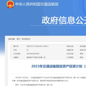 下达2023年第一批交通运输固定资产投资计划,