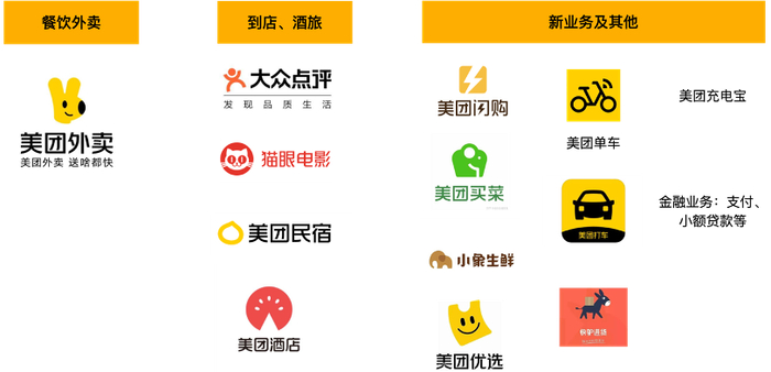 消费者通过美团餐饮外卖的平台,搜索、发现、预计及支付餐饮商家的产品,并享受餐饮产品配送到家门口的服务,消费者可以通过美团APP、美团餐饮外卖APP、大众点评、小程序等几个端口进入到美团餐饮外卖的点单界面。