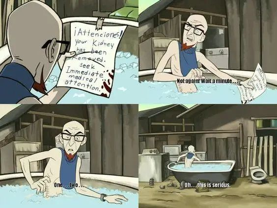 上世纪90年代,这个都市传说最早在欧美出现,原始版本的故事,大概就是说一个游客在度假的时候,在国外酒吧碰见了个富有魅力的异性,然后在寻欢过程中被迷晕,在最后,寻欢的游客会在充满冷水的浴缸中疼醒,而旁边儿的便条上则写着:快打911,你的肾被我们拿走了。