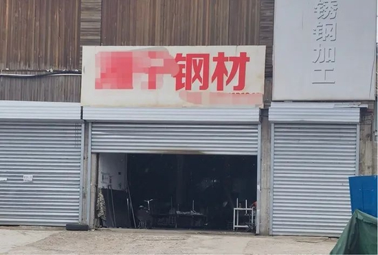 (钢材商家半掩的卷帘门;苗诗雨/摄)