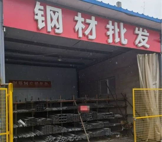 而仅一马路之隔,记者看到了第二家钢材厂商的招牌,半掩的卷闸门内灯光昏暗,目光所及之处看不到员工的身影,只见零星钢材的堆放。