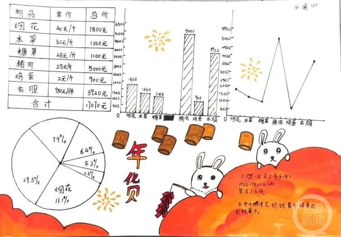 同学们使用了多种图表来统计年货花费。