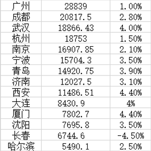 南京、宁波、青岛、济南、西安位列副省级城市第6至第10位。其中,宁波的GDP首次突破1.5万亿元大关。