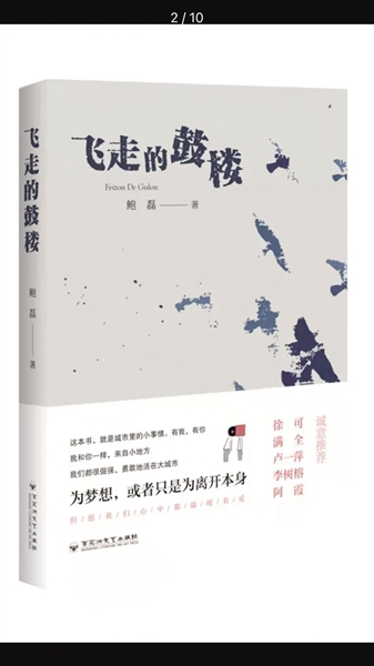 《飞走的鼓楼》,是具有鲍磊鲜明的个人风格的——语言运用有张力,结构设定有特色,故事讲述别具一格,而且他只是“因为热爱而写作”,不只是因热爱“钱”而写作,便自然而然从内心流淌出了难得的真诚、挚诚甚至虔诚,让读者深入领会到“知之者不如好之者,好之者不如乐之者”的写作境界。