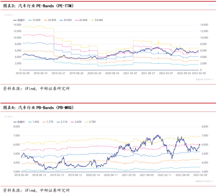 估值方面,截止2月10日收盘,汽车行业PE(TTM)为46.43倍,较上周47.09倍环比下滑1.40%;汽车行业PB(MRQ)为2.39倍,较上周2.43倍环比下滑1.65%。