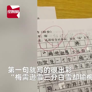 小学生满分作文跑题老师含泪打5分:把“悔”看成“梅”