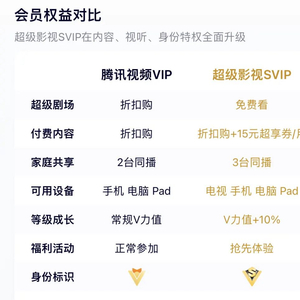 腾讯视频官方显示,SVIP和VIP相比,在可用设备上增加了电视,包年费用也贵上百元。