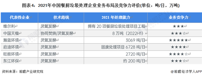 目前,布局了餐厨垃圾处理业务的上市企业中,瀚蓝环境的餐厨垃圾处理能力遥遥领先于其它企业。餐厨垃圾处理产业链上的其它代表性企业业务布局及竞争力情况如下: