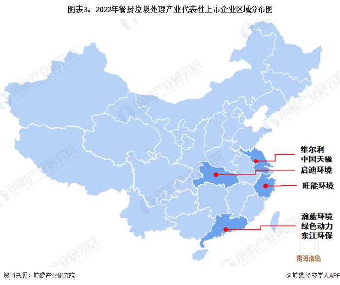 从代表性企业分布情况来看,我国餐厨垃圾处理代表企业分布在江苏、浙江、广东等沿海省市,以及湖北等内陆省市。