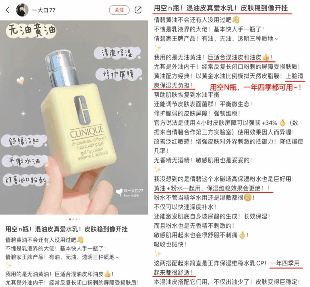 小*书上光「倩碧黄油」都有5w+种草笔记: