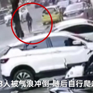 云浮一餐饮店煤气泄漏爆炸瞬间:门口数人被气浪掀飞 门窗玻璃冲上马路