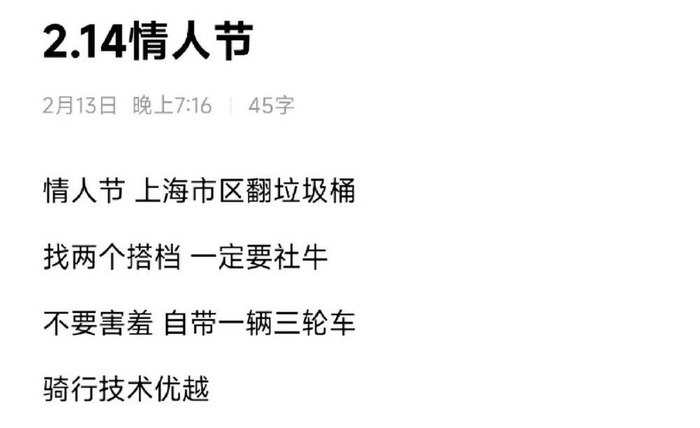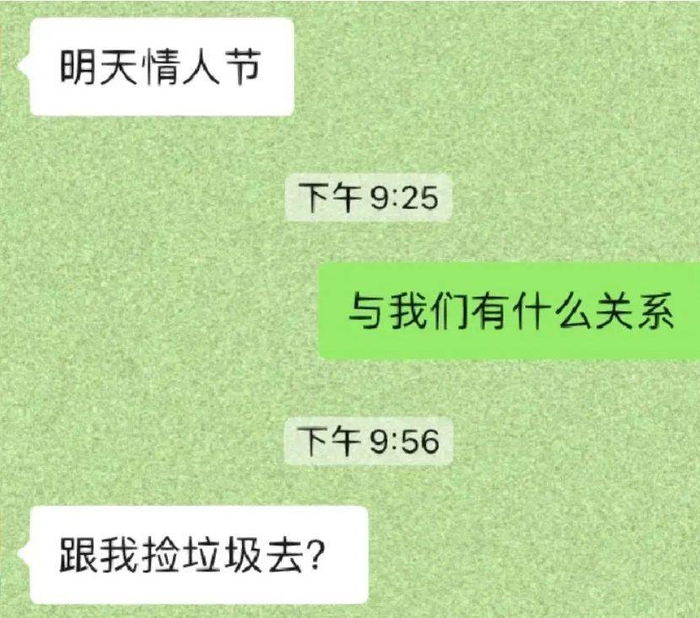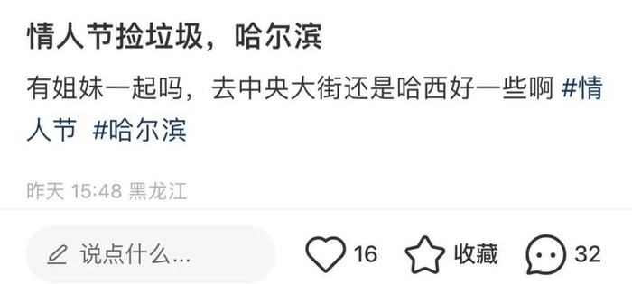 在社交媒体上,人们在情人节来临之际已经不再忙于哭号单身之苦,而是纷纷发起了“捡垃圾求组队”的帖子。