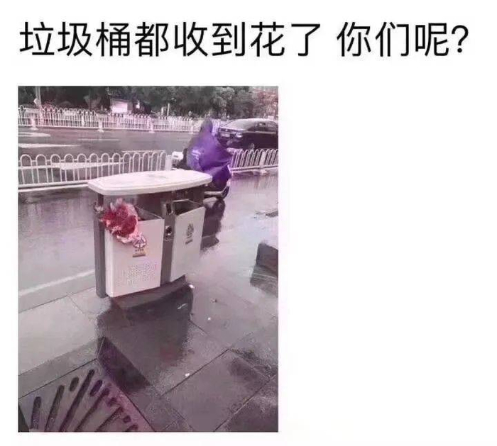 为此还诞生过一个流传已久的梗:“垃圾桶都被你先收到花”。
