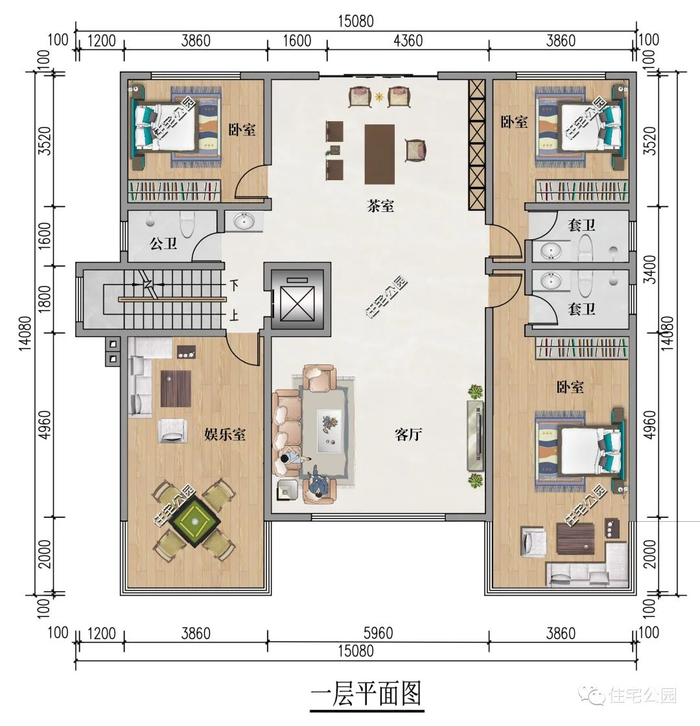 负一层设宽敞的堂屋,方便祭祖祈福。