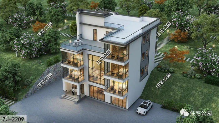今天这套现代四层别墅ZJ-2209,就是为云南齐先生定制设计的。由于齐先生家的宅基地情况特殊,宅基地处于一块坡地上,有高低差,常规户型肯定不适用,生搬硬套很可能出现结构安全问题!