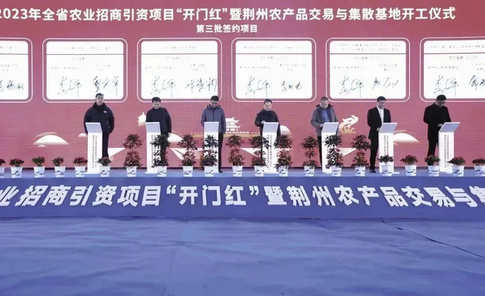 2月12日上午,在2023年全省农业招商引资项目“开门红”暨国家级荆州农产品交易与集散基地开工仪式现场,荆州高新区与正大集团、北大荒商贸集团等头部企业集中签约,签定6个农业项目,投资额95亿元。