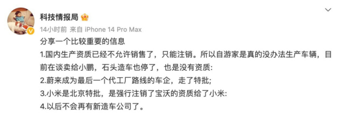 未来“新能源车企注册或将被锁死”的真实性有待商榷,但如今新造车赛道开启淘汰赛已是不争的事实。