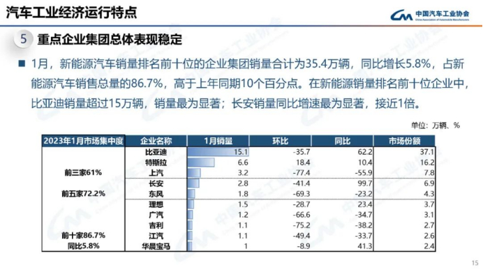 数据显示,对比2022年春节月的2月份,2023年1月新能源汽车的产销分别增长15.4%和22.2%。