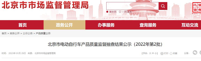 中国经济网北京2月14日讯 北京市市场监督管理局日前公布《北京市电动自行车产品质量监督抽查结果公示》(2022年第2批)。
