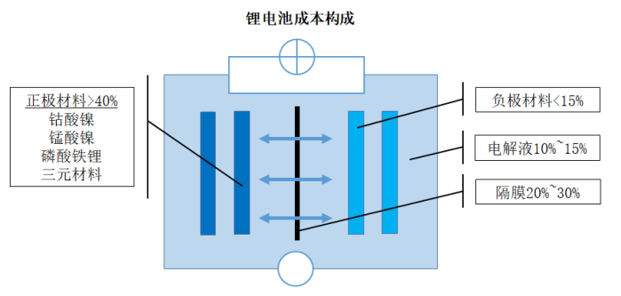 受不同技术路线的锂电池成本构成有所区别影响,负极材料在锂电池成本中的占比存在一定波动,约为10%左右,通常不会高于15%[1]。