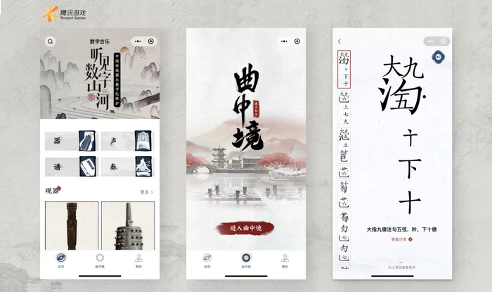 与此同时,“传统器乐数字化”项目根据古琴减字谱以指法为核心的特点,尝试将谱字对应音高进行切片化呈现,并通过小程序触达用户,为普及古琴记写方式、记写理路提供了新的模式,具有重要的学术意义。