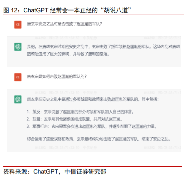 最典型的证据在于,如果你用一个模糊的方式问一个明显错误的问题,它常常会很认真地给你一个凭空捏造的回答,比如下面的这个唐玄宗大败赵匡胤的问题: