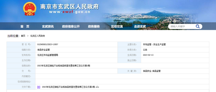 2023年南京市玄武区抽检不合格食品核查处置结果汇总公示 第1期