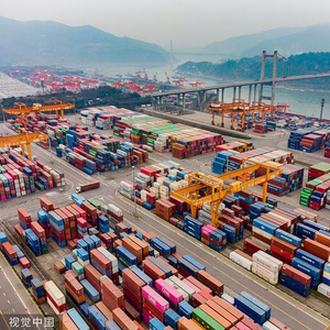 2023年2月12日,重庆,坐落于长江北岸的果园港,一派繁忙景象。视觉中国 资料图