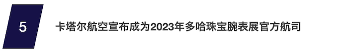 卡塔尔航空宣布成为2023年多哈珠宝腕表展(DJWE)的赞助商,作为卡塔尔年度社交日历中持续时间最长和最令人期待的盛事之一,该活动每年在海湾地区举行,以其独有的B2C模式吸引预计超过30,000名来自世界各地的游客齐聚卡塔尔。2月20日至25日,为期6天的多哈珠宝腕表展将于卡塔尔多哈会展中心举行。届时,观展者可欣赏到来自500多个全球知名珠宝腕表品牌独具匠心的精湛工艺。