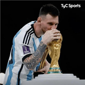 TyC发布梅西亲吻大力神杯的经典照片:情人节快乐
