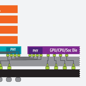HBM是一种基于3D堆叠工艺的DRAM内存芯片,它就像摩天大厦中的楼层一样可以垂直堆叠。基于这种设计,信息交换的时间将会缩短。这些堆叠的数颗DRAM芯片通过称为“中介层(Interposer)”的超快速互联方式连接至CPU或GPU,最后可将组装好的模块连接至电路板。